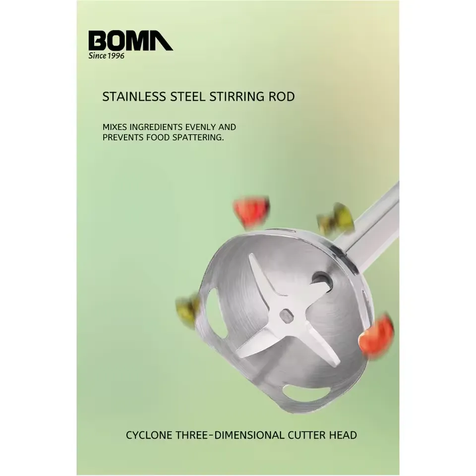 Batidora de mano Boma, potente y práctica, ideal para mezclar cremas, sopas y alimentos para bebés. Con eje desmontable para fácil limpieza y motor duradero.
