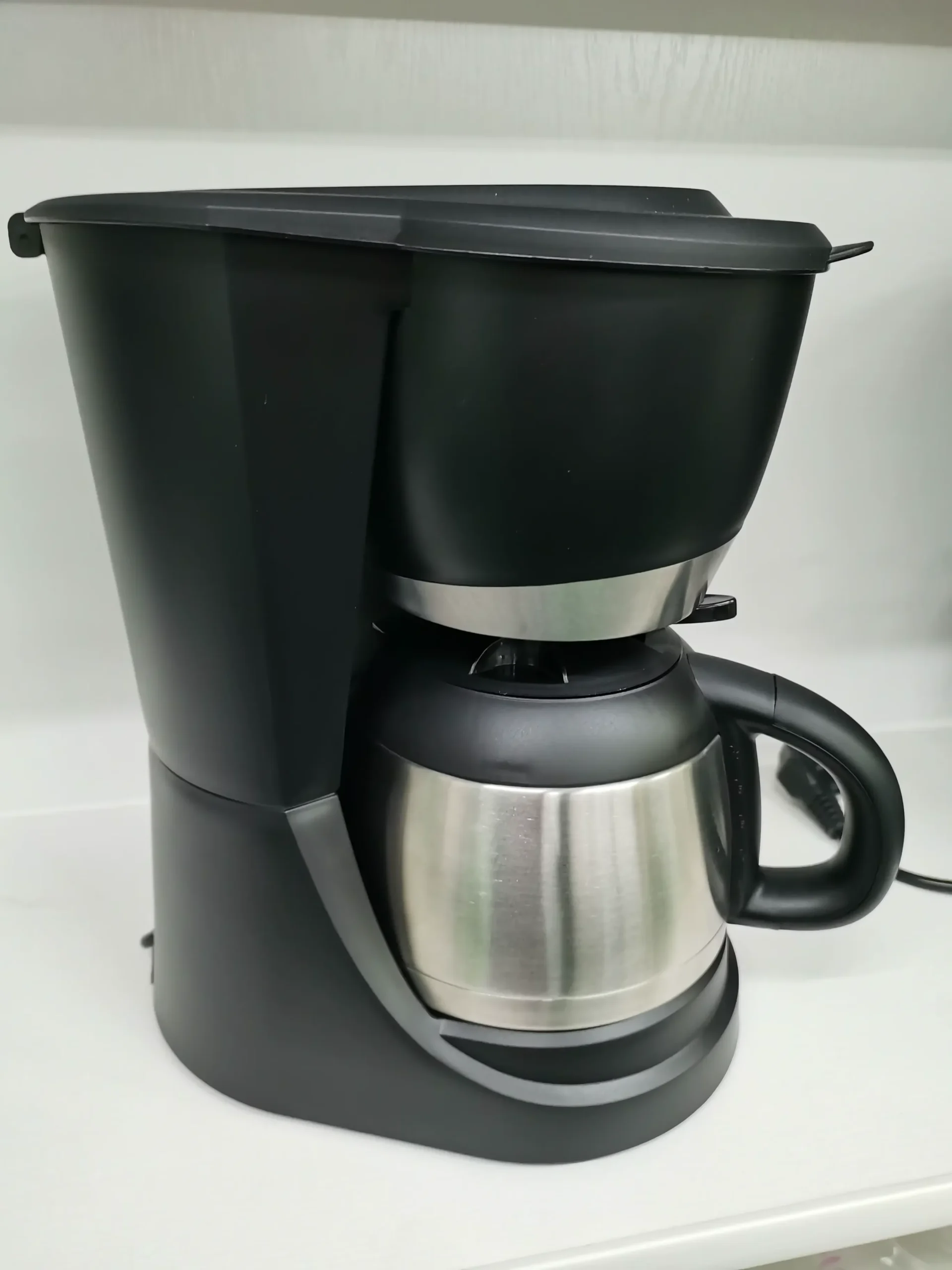 Está equipada con una jarra térmica de acero inoxidable, lo que garantiza que el café conserve su temperatura y sabor sin necesidad de recalentarlo. Además, incorpora un sistema antigoteo, lo que permite servir café durante el proceso sin derrames, y una ventana de nivel de agua, para mayor comodidad en el llenado.
