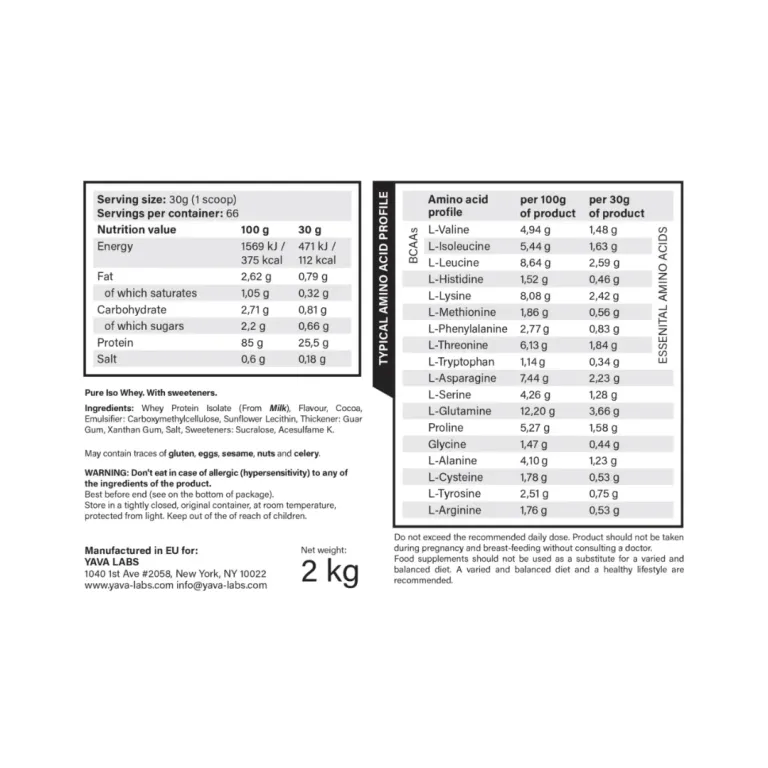 Elite Whey Protein de Yava Labs. Repleta de 22 g de concentrado de proteína de suero de alta calidad por ración, esta fórmula está diseñada para favorecer el crecimiento muscular y mejorar la recuperación.