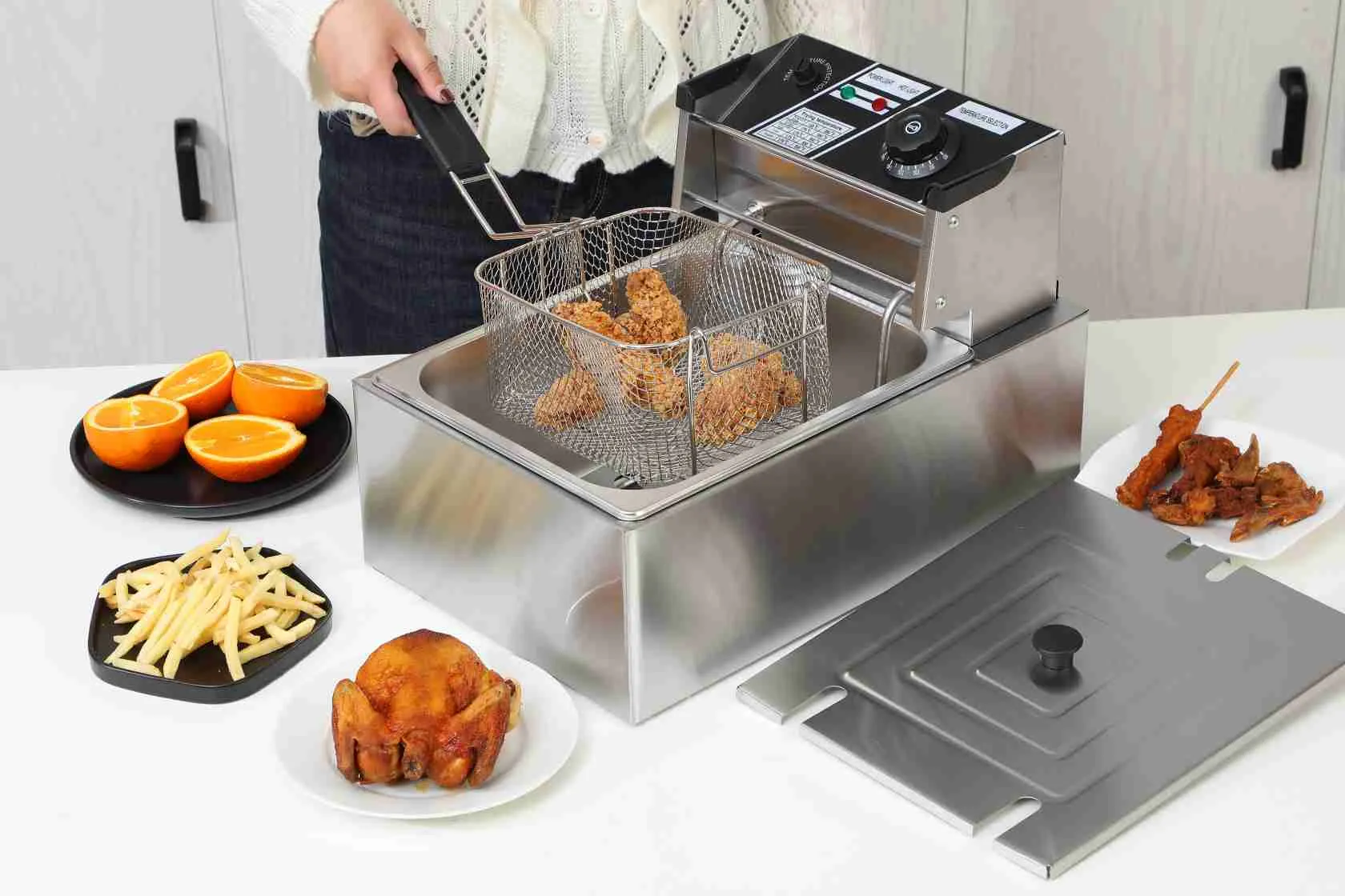 Freidora de aceite con capacidad de 6L y potencia de 2500W.
