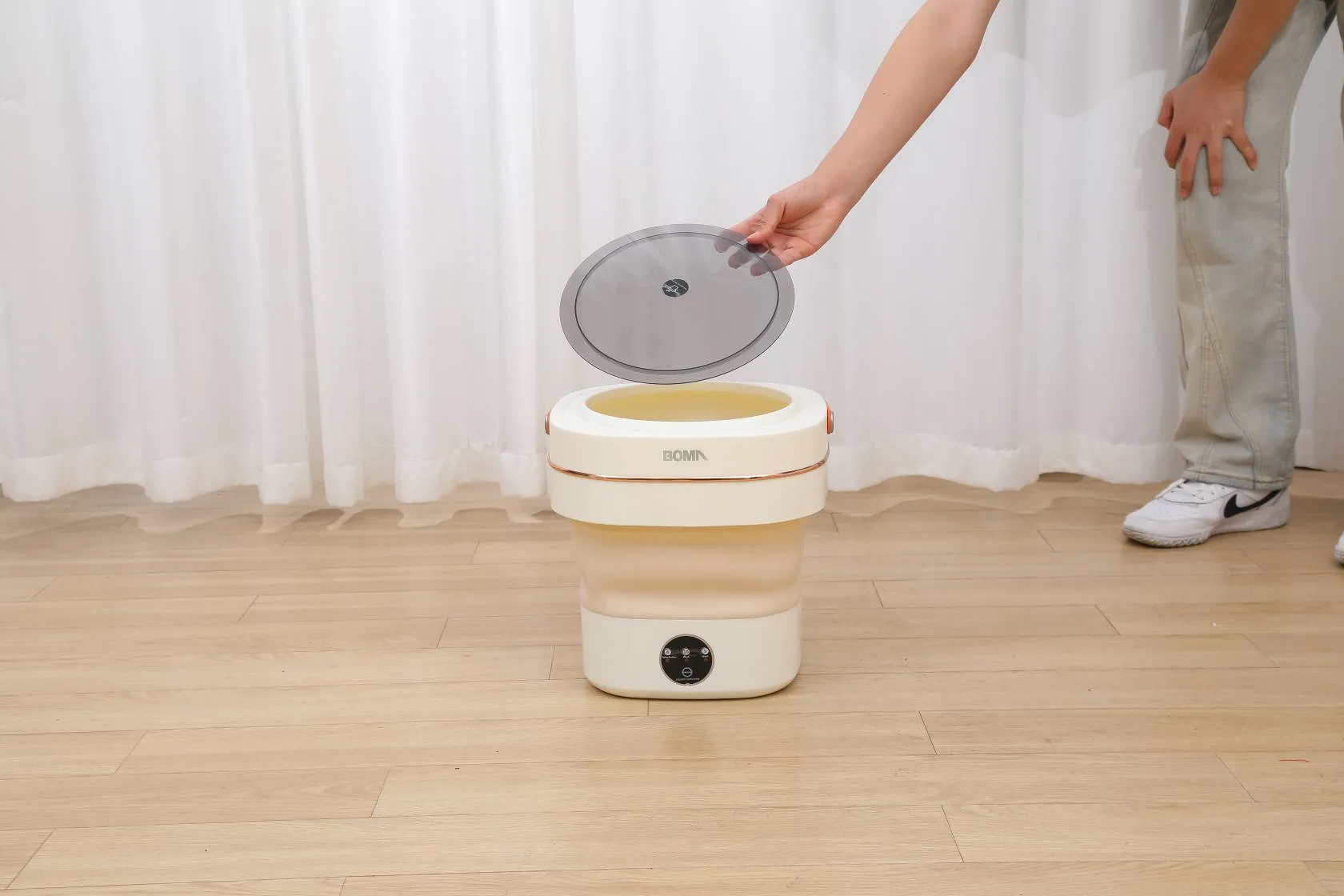 La lavadora BM-488 ofrece practicidad con su diseño plegable que permite guardarla fácilmente en espacios reducidos. Su capacidad de 9L y potencia de 60W son suficientes para ropa ligera. Es ideal para viajes, departamentos o campamentos, siendo una opción versátil y funcional.