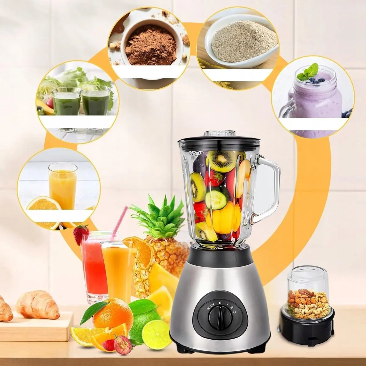 Licuadora Inox de Vaso de Vidrio 1.5L más Moledor de Granos 800W X6