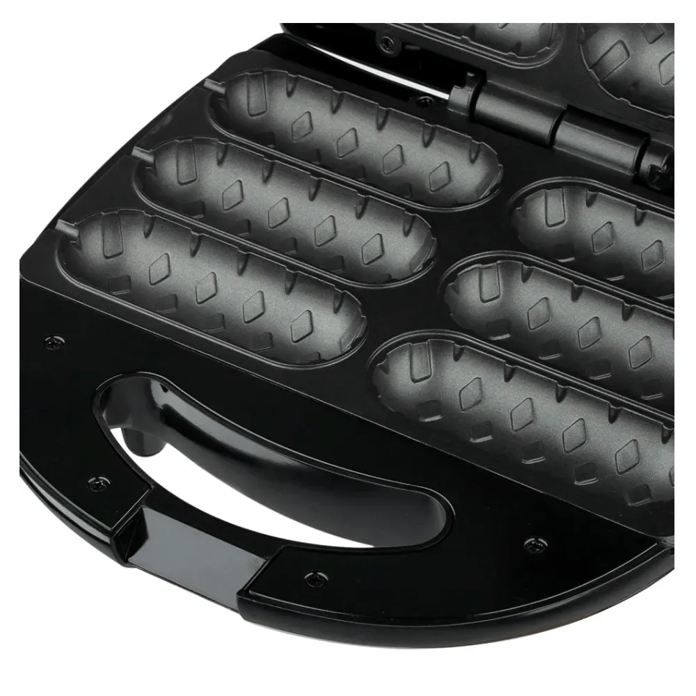Máquina eléctrica antiadherente de 1400W para preparar yoguis, hot dogs y chorizos en casa. Capacidad de 6 moldes, cocción rápida y uniforme con diseño compacto y seguro.
