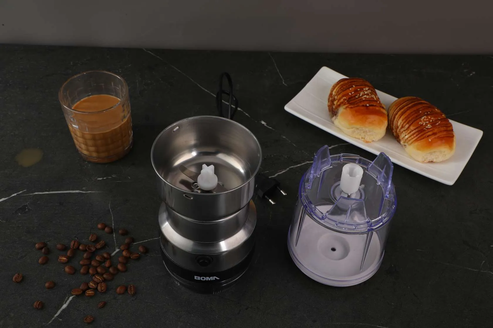 Molinillo BOMA BM-001F 2 en 1 de 300W con moledor de granos y picatodo. Versátil, compacto y con 6 meses de garantía.