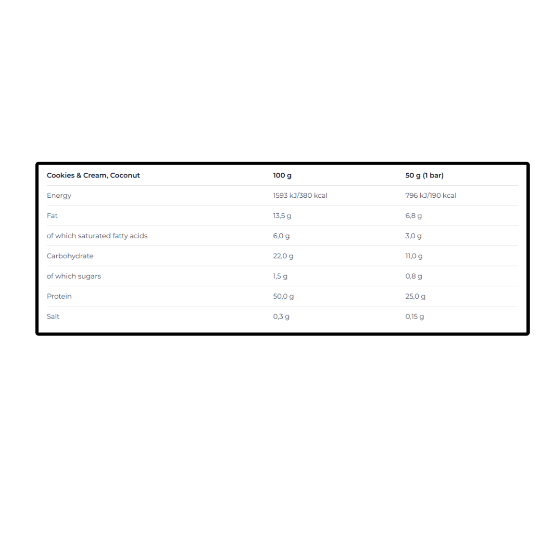 Sé el primero en valorar “PROTEIN BAR 50 COOKIES & CREAM (UNIDAD)”